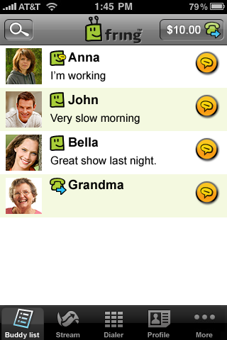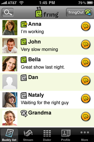 Well, one of the changes we’ve made in this version was displaying only online buddies. We’ve figured that you simply can’t video call friends who are currently offline, or call your contacts using fringOut without having any fringOut credit. Therefore, by displaying only online buddies, you get a shorter, more relevant, and infinitely more interactive buddy list. Of course, all the offline buddies are still there, and will be displayed again when they come back online. Address book contacts are displayed as soon as you’ll purchase fringOut credit.