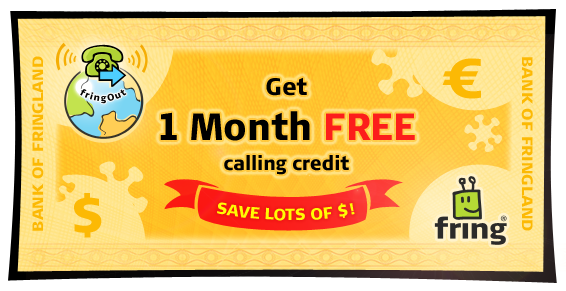 *2 bonus fringOut credit will automatically be added to your account. That bonus $2 credit is good for up to 400 minutes to our cheapest destinations from 0.5 Euro cent/min. Limit of 1 claim per customer