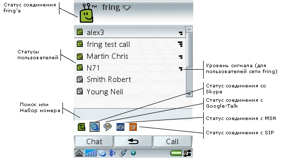 Эта версия fring для UIQ поддерживает всю функциональность (пока нет только сохранения истории), доступную версиям для других ОС.