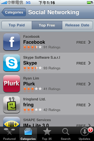 Apple iPhone OS 3.0 更新後,其中的 Push Notification (推撥通知) 功能可以讓你在幕後多工執行應用程式囉,也就是說小綠頭 fring 可以一直掛在線上,讓你的各種社群好友 (MSN、Skype、Google Talk、SIP 等) 隨時隨地都看到你,不論是傳送訊息或是撥打網路電話問你怎麼辦到的,都保證不漏接喔,夠酷吧 (P.S. 你的電力要很持久喔 XD)